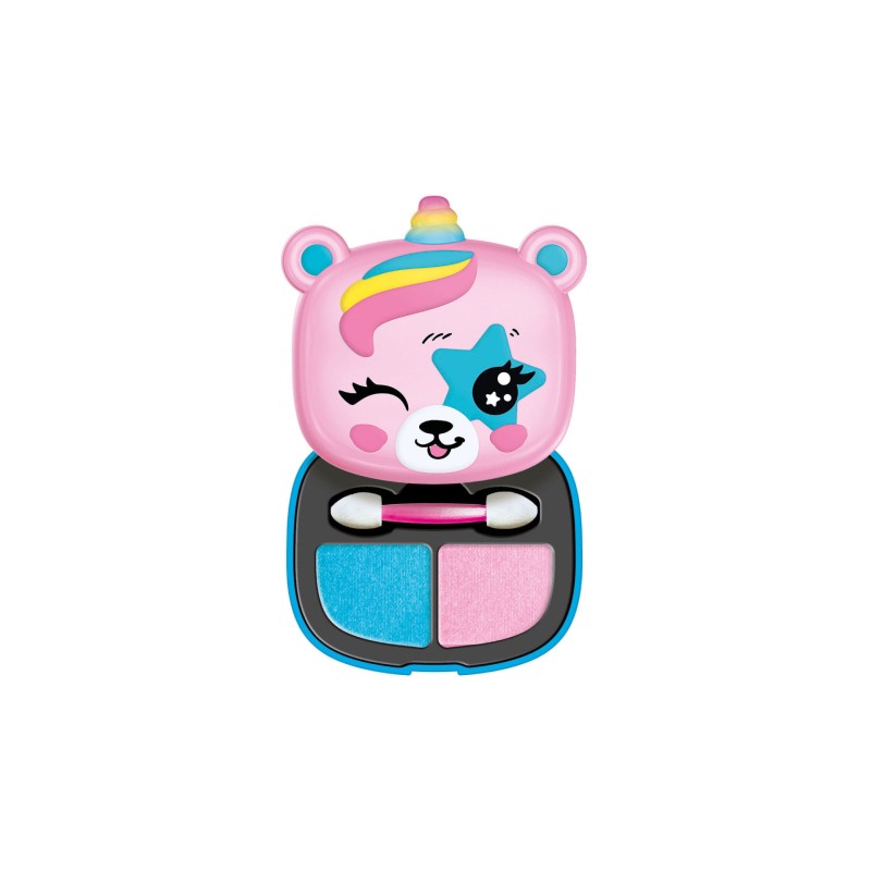 A mini makeup box in the shape of a baby animal and containing 2 eyeshadows, with a compact size to carry.