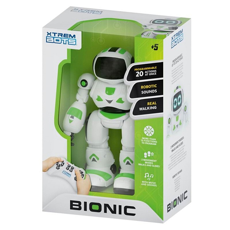 Xtrem Bots Bionic is a robot that can be controlled and programmed to perform various actions, ideal for encouraging the development of technical skills and logical thinking.