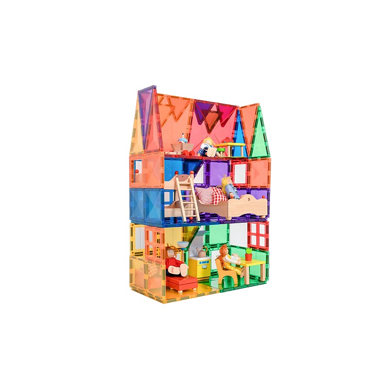 These pieces are made of high-quality clear plastic and are magnetic, which allows for stable and creative structures to be built, stimulating the imagination and cognitive skills of little ones.