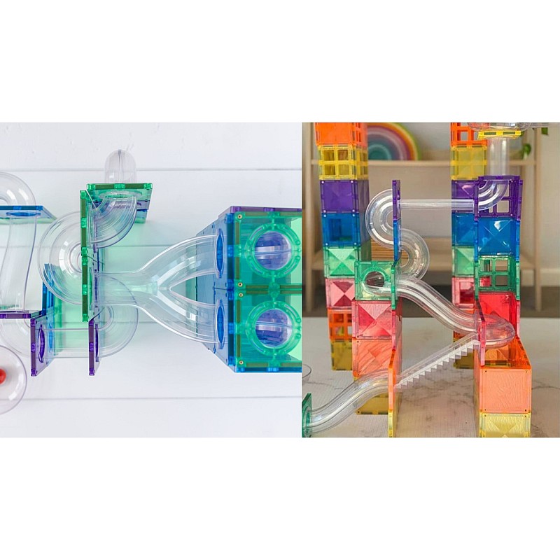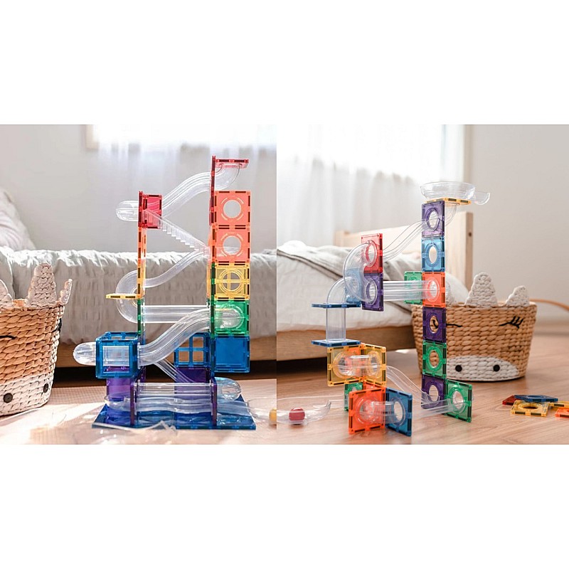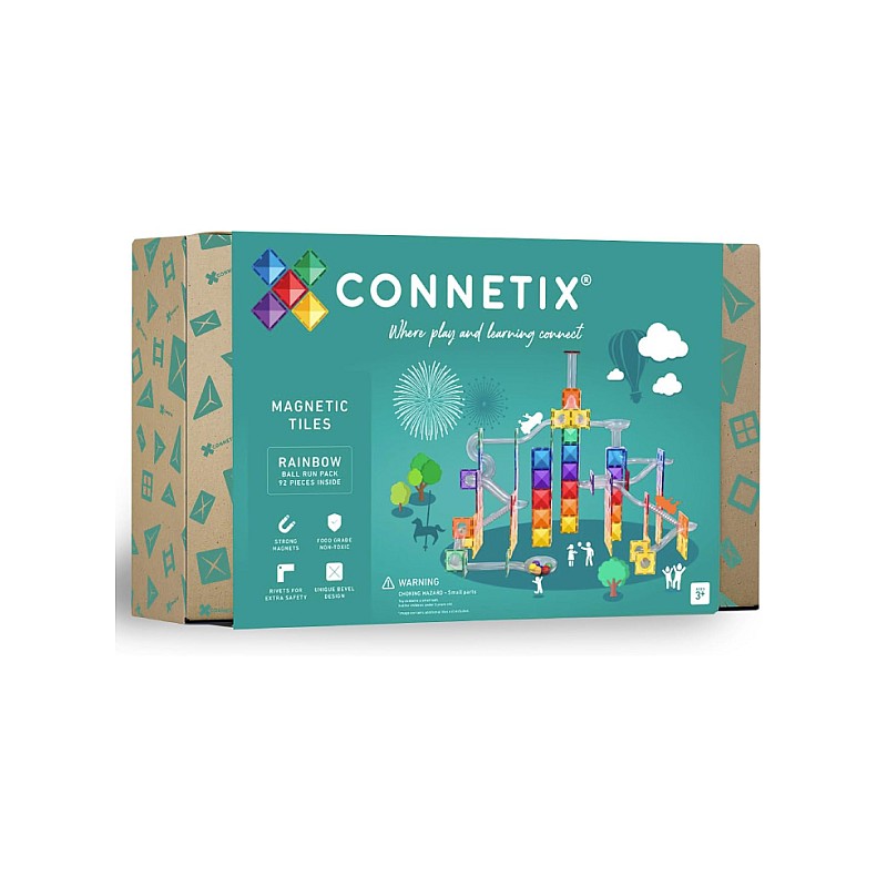 The Connetix 92 Piece Rainbow Ball Run Pack package is the perfect addition to any existing magnetic tiles collection and can be added for the coming years, as the child grows and the game and learning become more complex.