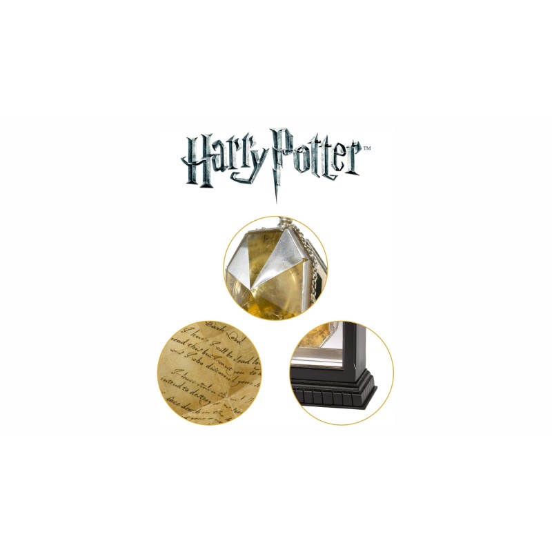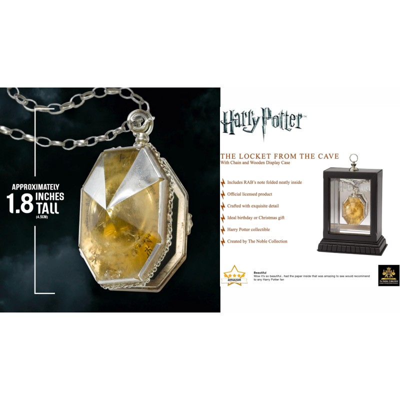 A unique reproduction of the False Horcrux medallion, as found by Harry and Dumbledore in the cave, which comes completely with a folded copy of R.A.B. inside.