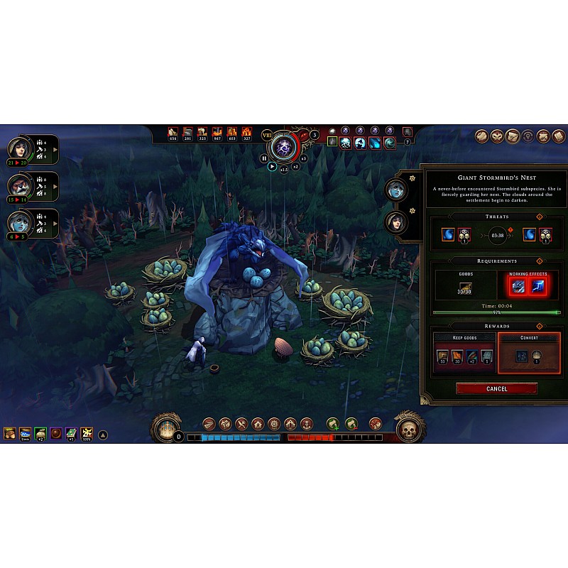 The wilderness contains many hidden dangers, and endless storms will submit your population. If your settlements fall, then the expedition can end - but not the game.