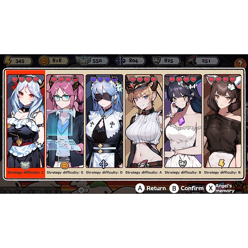 -Various characters: you interact with several demonic girls, each with your own personality and style.