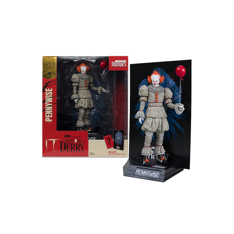 The figure is part of the Movie Maniacs Gold Label series from McFarlane Toys and is inspired by the IT series: Welcome to Derry.