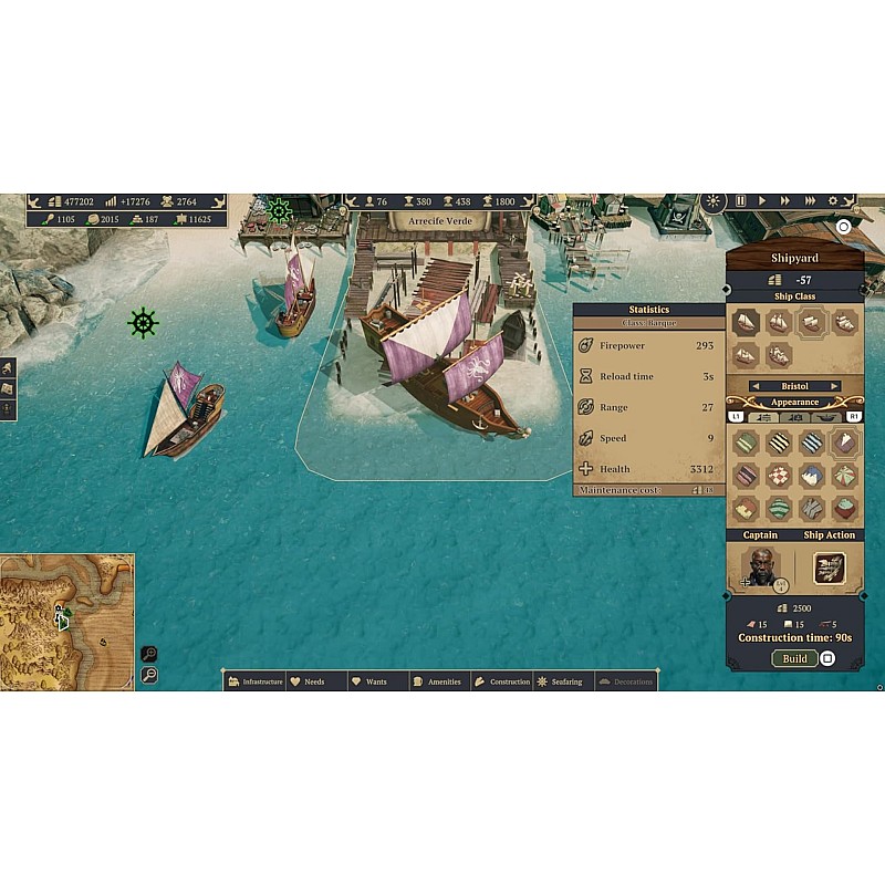 Distribute valuable goods through a network of docks, warehouses and warehouses, to meet the needs of your citizens and to increase their status in the society of pirates.