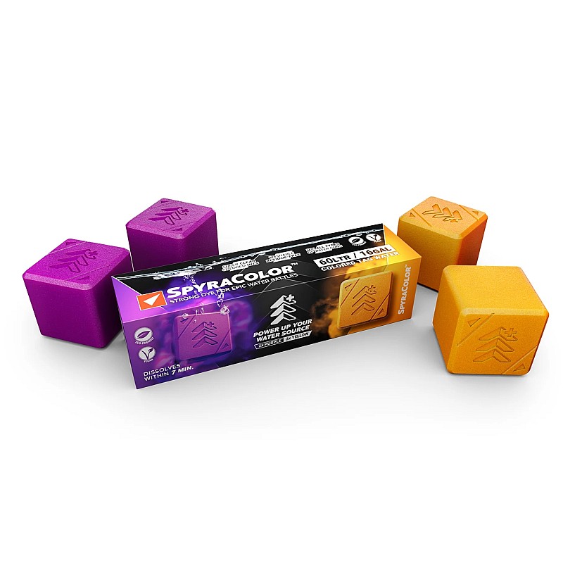 Compatible with all Spyra water guns. Available in blue/red and yellow/purple. Four cubes per package. The colored cubes are not intended for consumption!