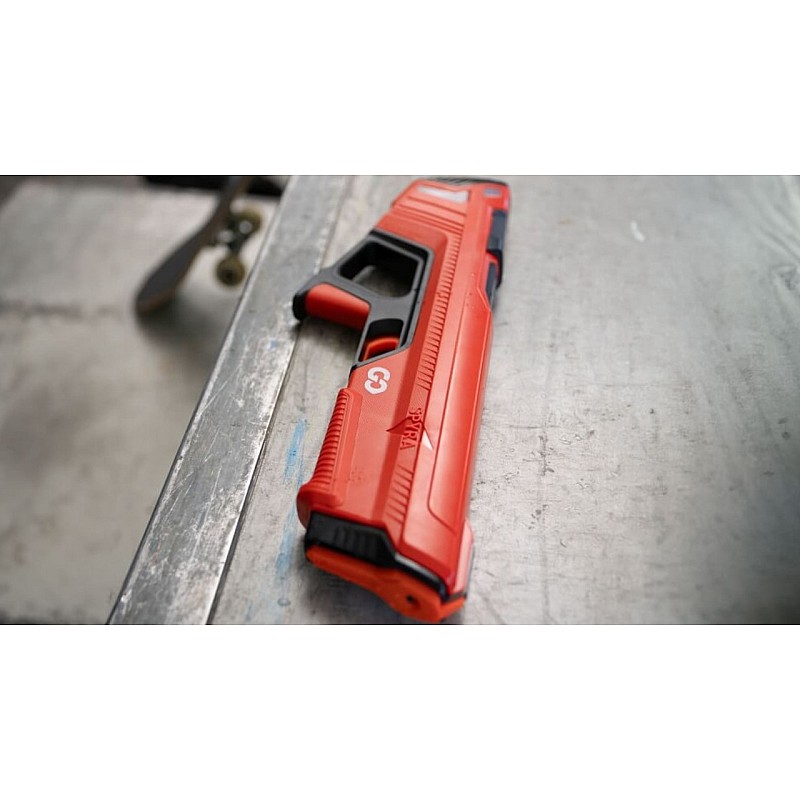SpyraGO is the Light model, with manual refilling of the tank through a slider (tank slider), LED display for the number of launches left and the battery level, as well as a level indicator in the tank.