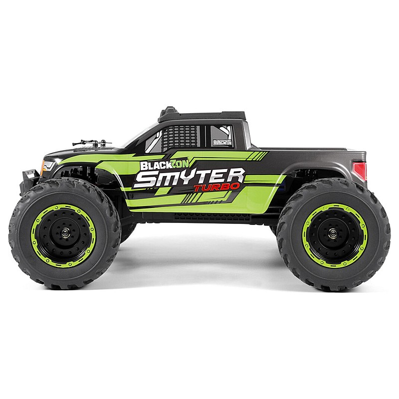 A Blackzon Smyter Mt Turbo 1/12 4WD 3S Brushless nagy teljesítményű, gyors és ellenálló Monster teherautó, ideális az RC terepjáró verseny szenvedélyéhez.
