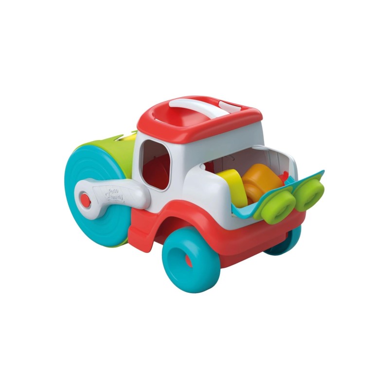 A blokkok "evőjével" felszerelt jármű lehetővé teszi a gyermekek számára, hogy bemutassák a lágy Clemmy blokkokat, hogy visszanyerjék őket a hátsó rekeszből, és tornyok építhessenek, ezáltal ösztönözve a kíváncsiságot és a kézi szemek koordinációját.