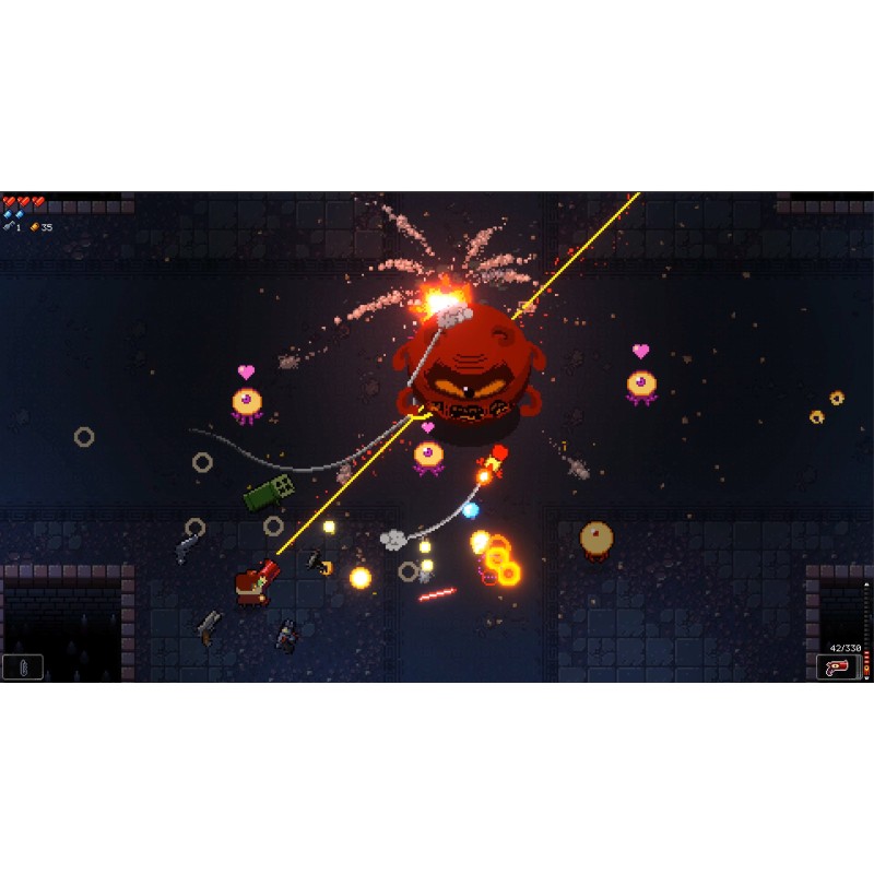 - Öltözők, ellenségek, főnökök, fegyverek és bizarr tárgyak együttesen biztosítják, hogy ne legyen két egyforma kísérlet a Gungeonból való kilépésre.