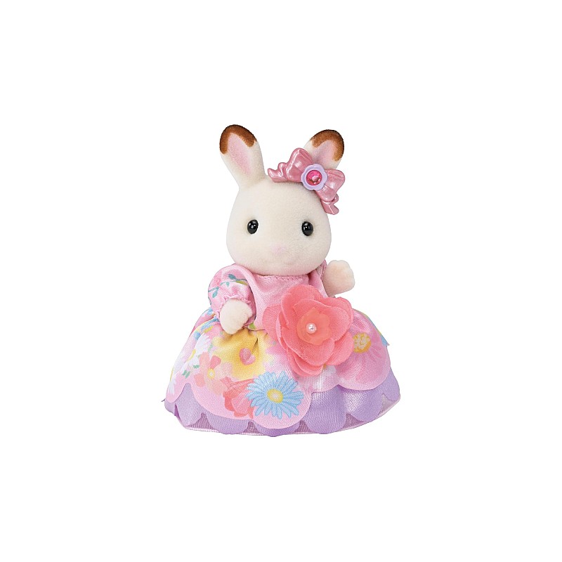 Négy karakter van, köztük a csokoládé nyúl arca és a perzsa macska, mindegyik igazi virágruhát visel.
