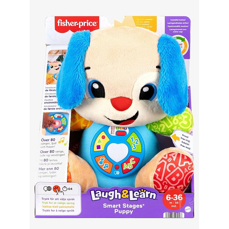A Fisher-Price Smart Stages Laugh & Learn Puppy egy bújós zenés játék, amely megtanítja gyermekét az ábécére, a formákra, az első szavakra és egyebekre!