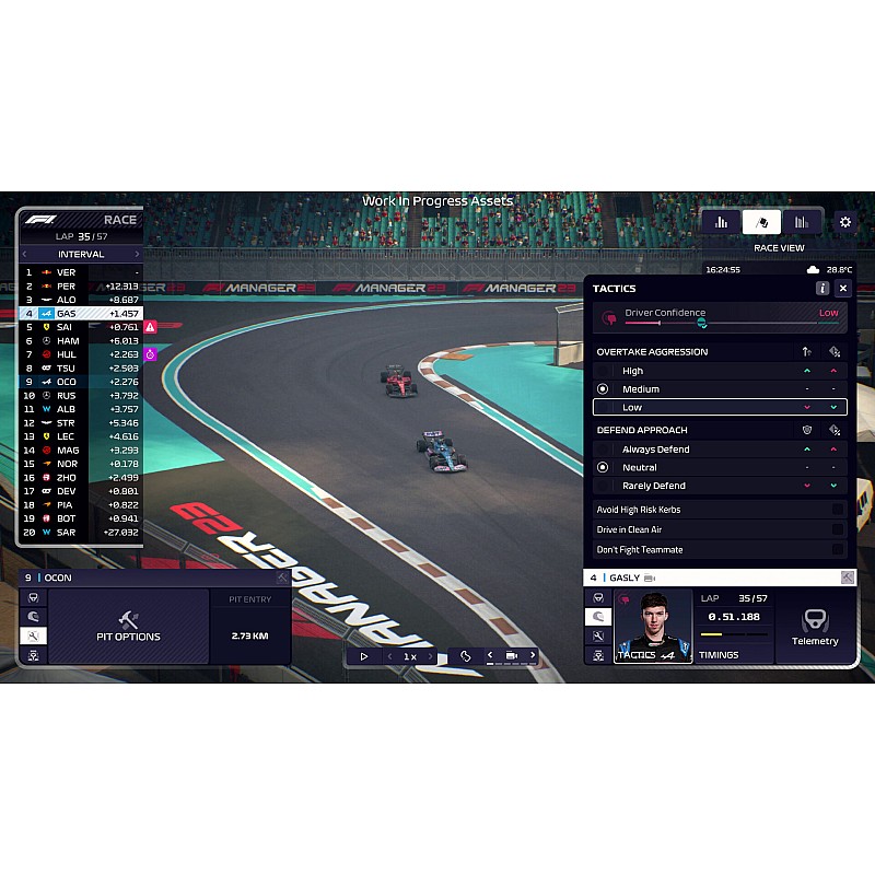 - Mérje fel a kockázatokat, és használja az új Driver Tactics opciókat, hogy felkészítse pilótáit arra, hogyan közelítsék meg a versenyt, és hogyan kerüljenek ki az élre a pozíciókért vívott fontos csatákban.