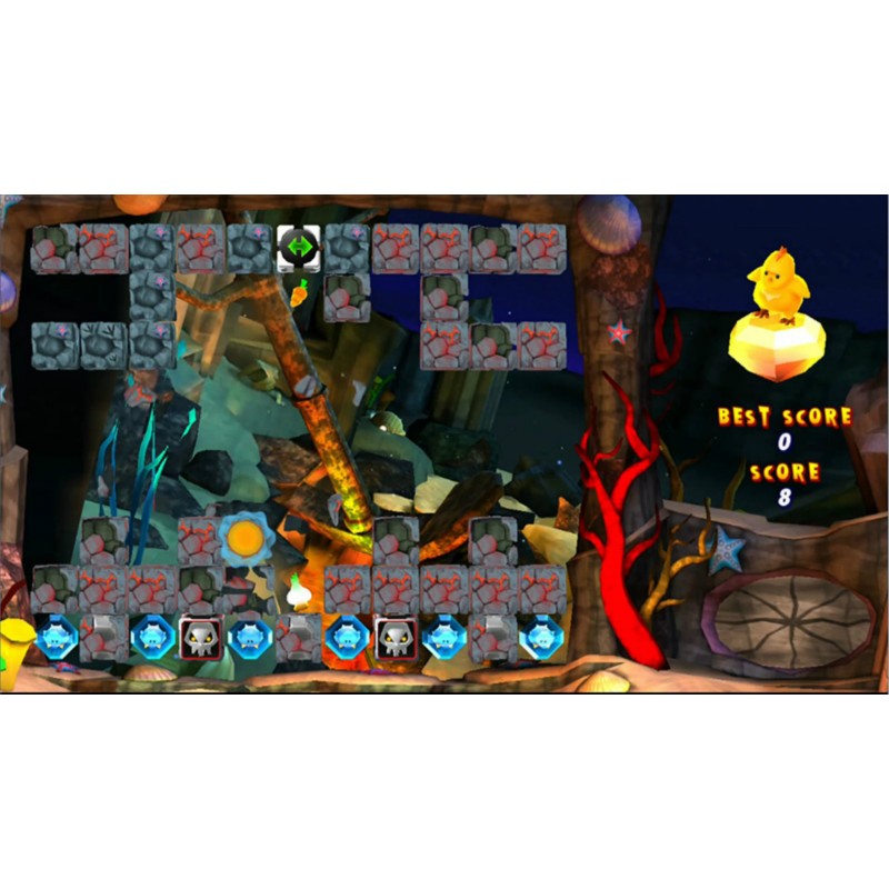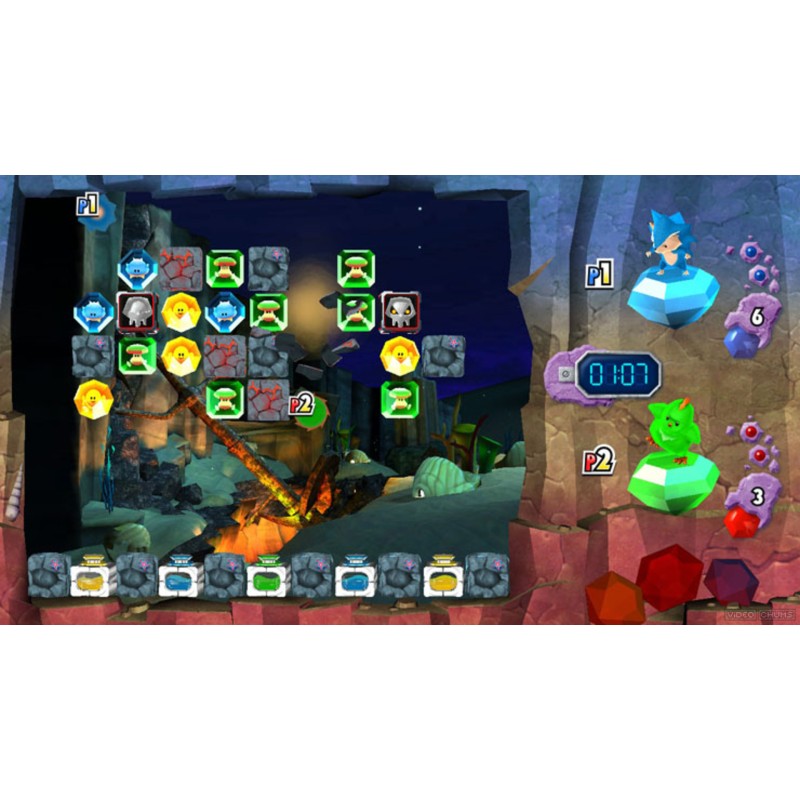 - Ugorj fel és le a térképen, és nyomd meg a színkapcsolókat, hogy megfeleljenek a drágakövek színének, hogy összetörd őket.