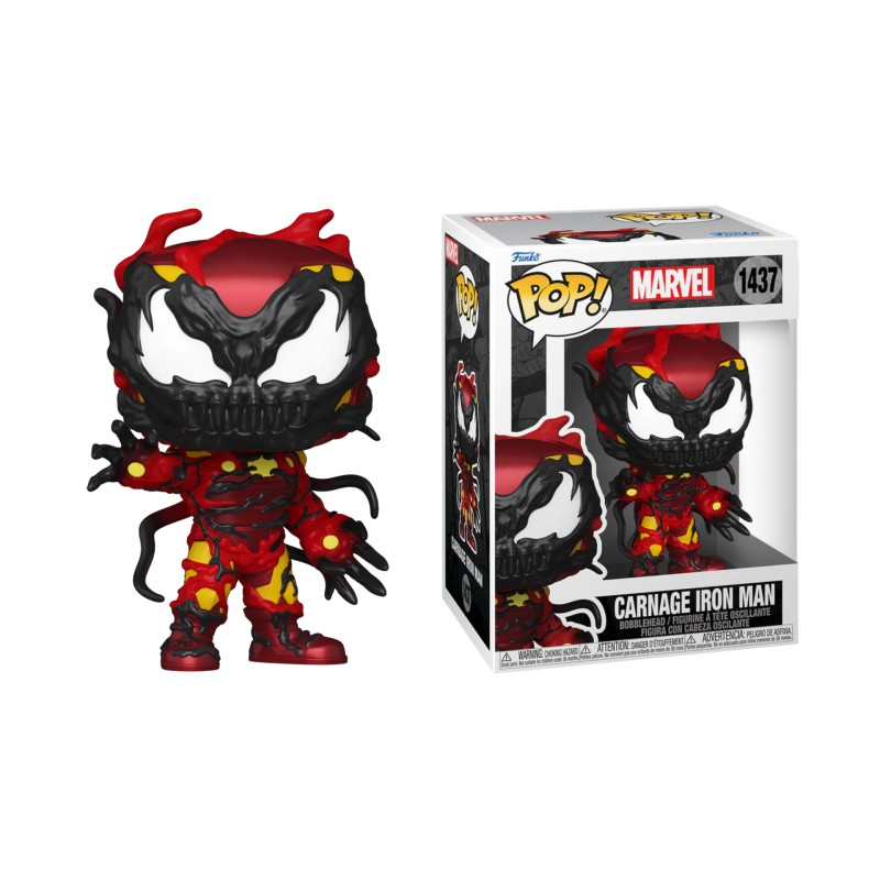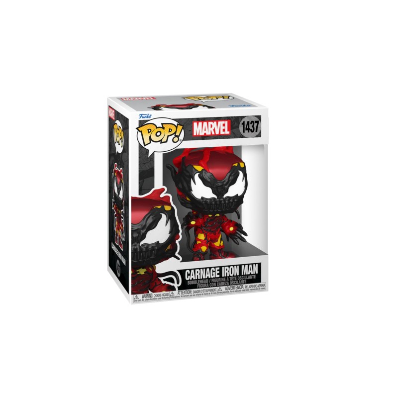 Ennek a Funko Popnak minden részlete! Úgy tervezték, hogy hangsúlyozza az Iron Man csúcstechnológiás páncélzata és a Carnage szerves és sérült szimbiótája közötti kontrasztot.