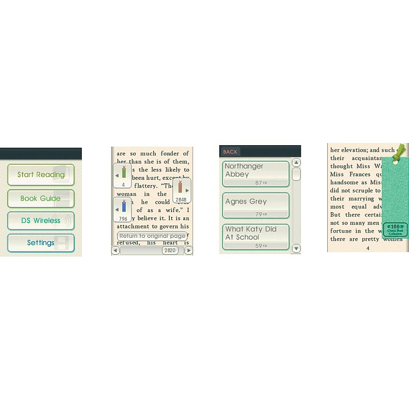 - A toll egyszerű megnyomásával lapozhat. 100 klasszikus könyv két betűmérettel rendelkezik az ideális olvasmány érdekében.