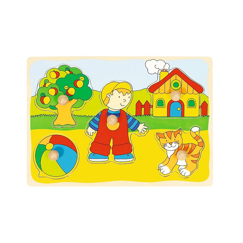 Nagyon szép és egyszerű plug-in puzzle! Az extra nagy fagomboknak köszönhetően kiválóan alkalmas kisgyermekes játékok bevezetésére a rejtvények világába!