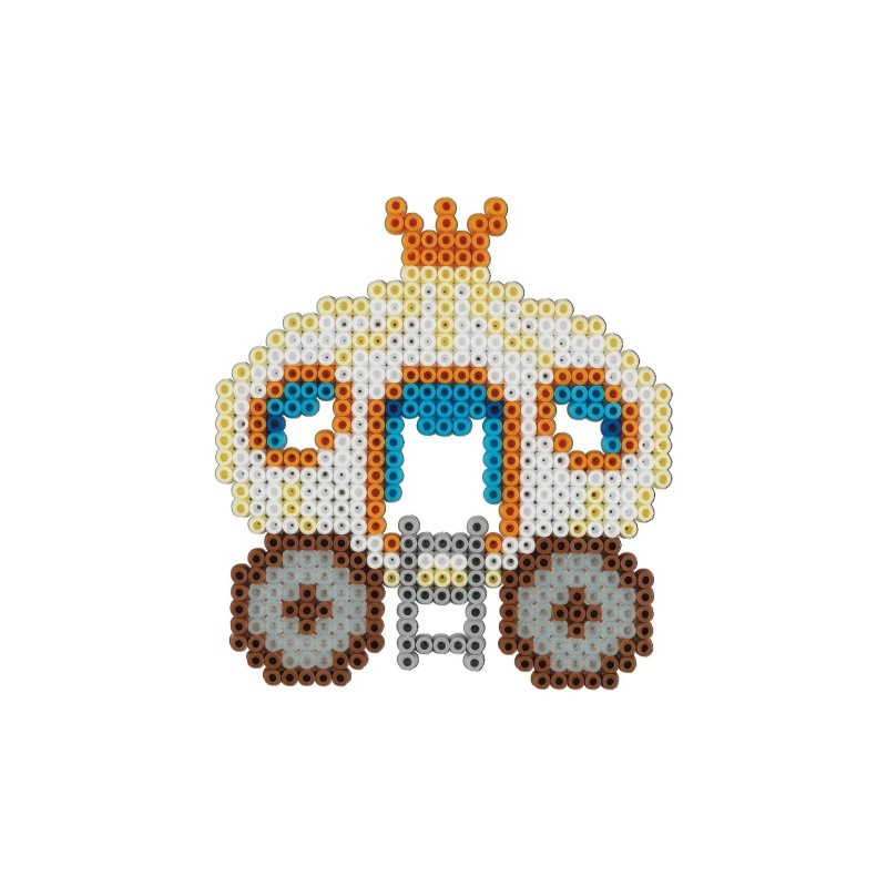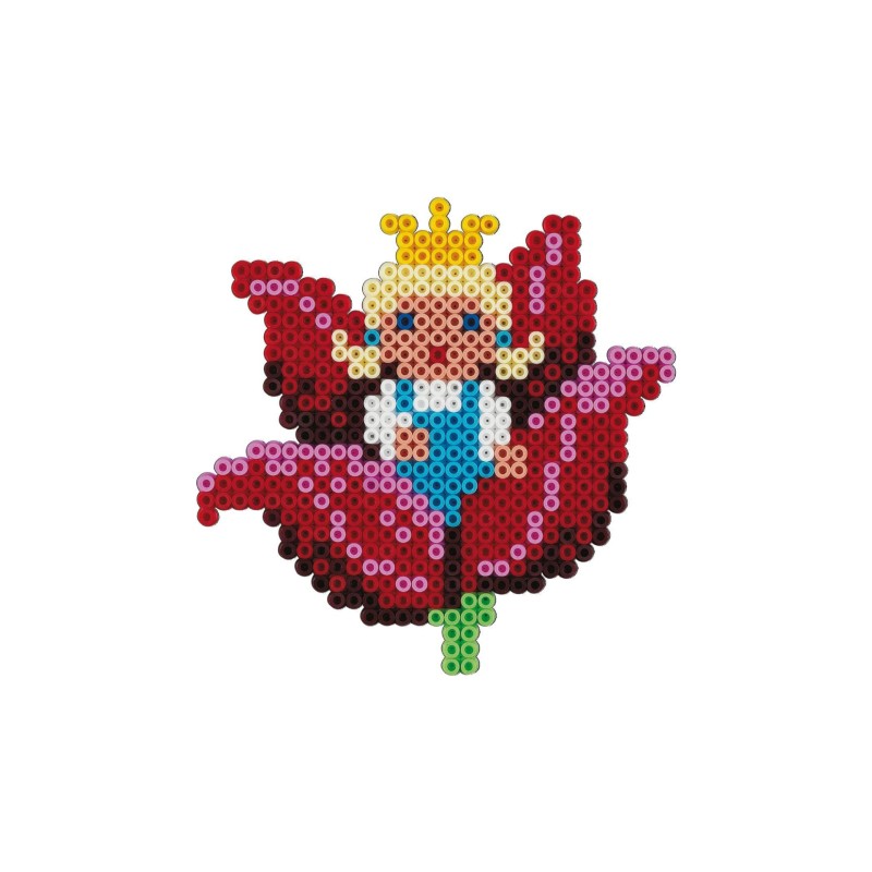 A dobozban kb. 6000 gyöngy, 3 tolltányér, nagy négyzet, pillangó és tündér, mintás, kézikönyv és vasalópapír.