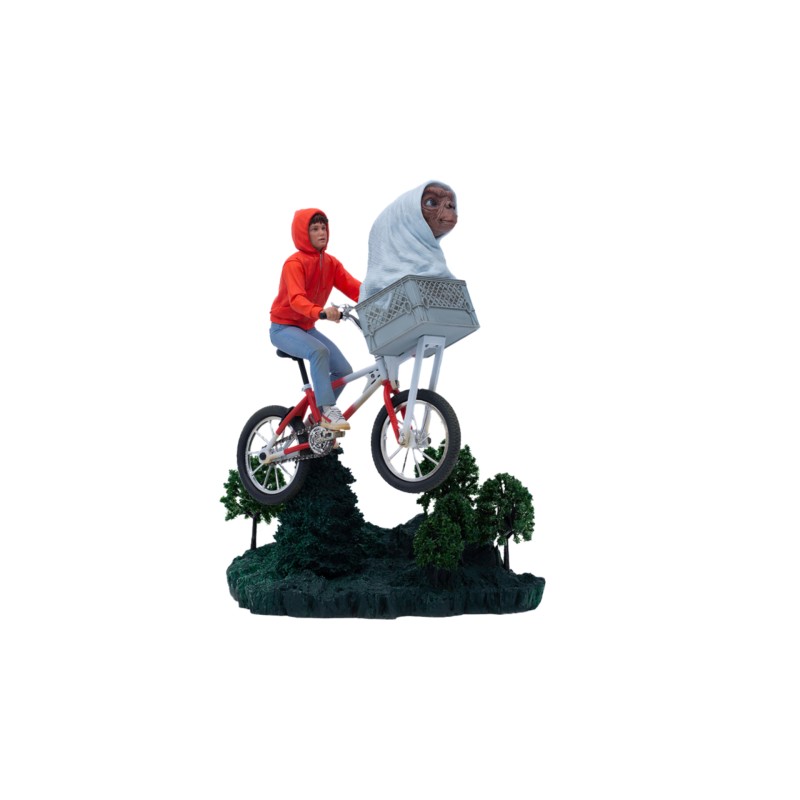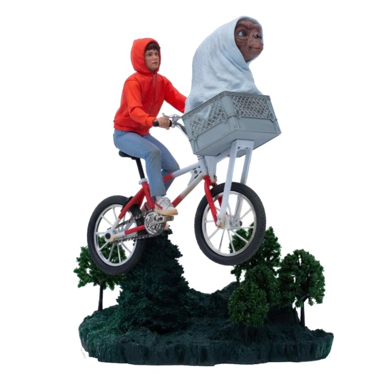 A kis földönkívüli, hogy elkerülje a rendőri útlezárást, telekinetikus képességeivel lebegteti a kerékpárt, felemeli a levegőbe, és a fák felett repül a céljuk felé.