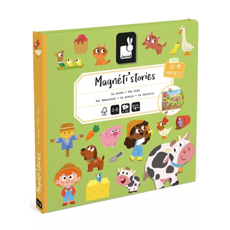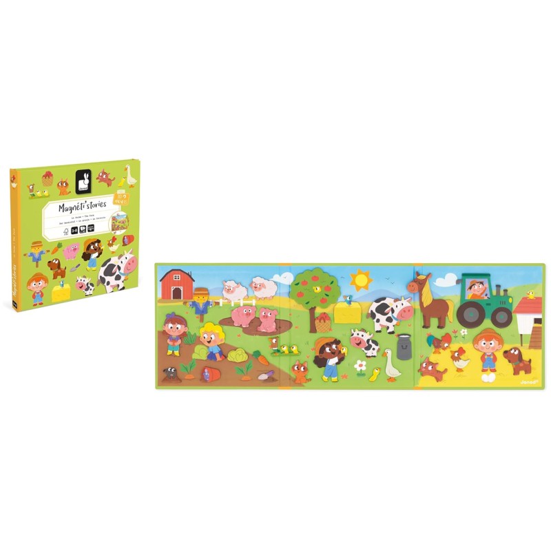A Magneti'stories, egy háromrészes mágneses könyv, amely kinyílik, gyermeke haszonállatokkal színezheti ki a napsütéses napokat.