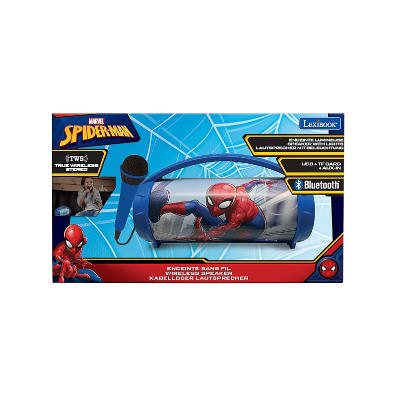 A Lexibook Spider-Man Bluetooth® Light Speaker mikrofonnal (BTP585SPZ) egy hordozható hangszóró Pókember témájú kialakítással, amely tökéletes a Marvel szuperhős rajongóinak.