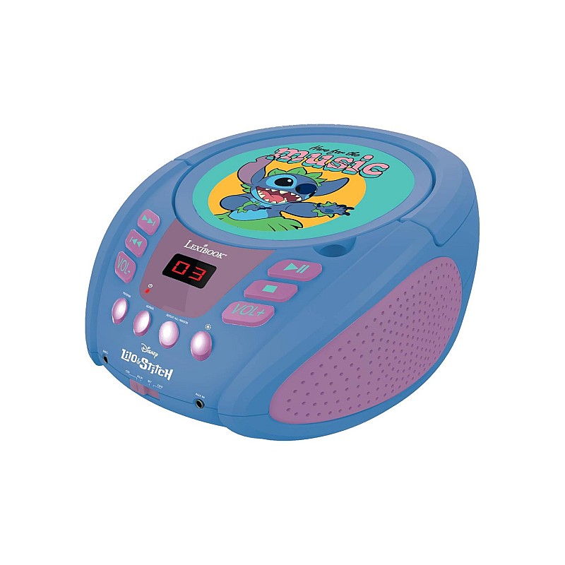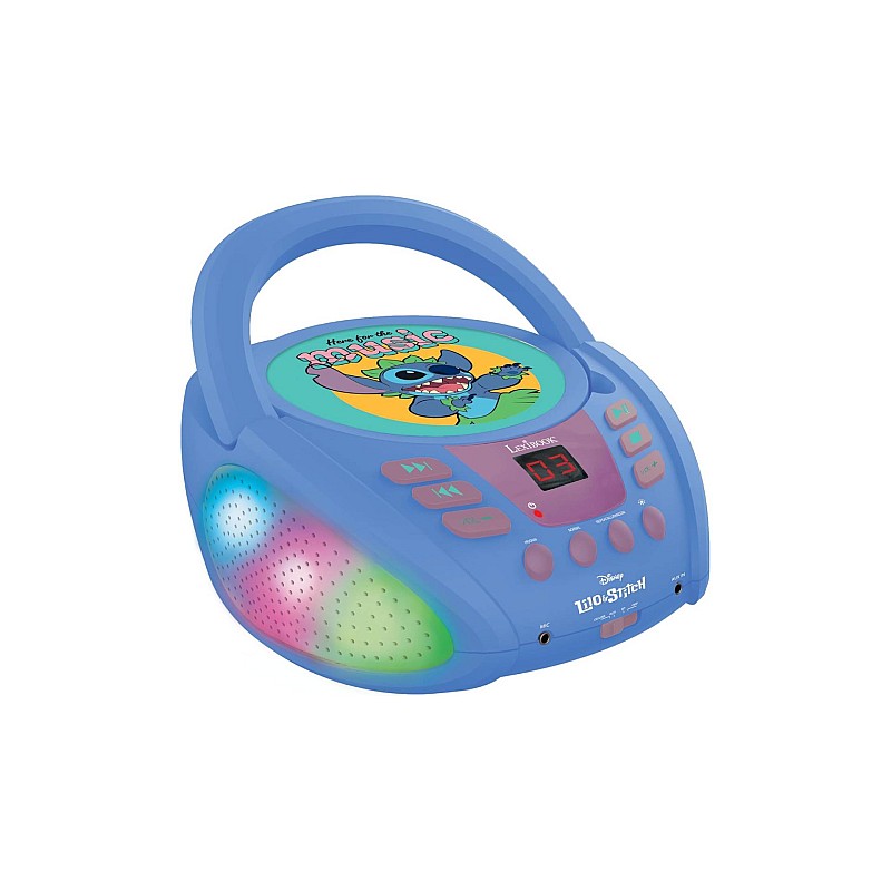 A tökéletes gyerekbarát CD-lejátszó Stitch-el és sokszínű fényeffektussal CD/CD-R/CD-RW kompatibilis.