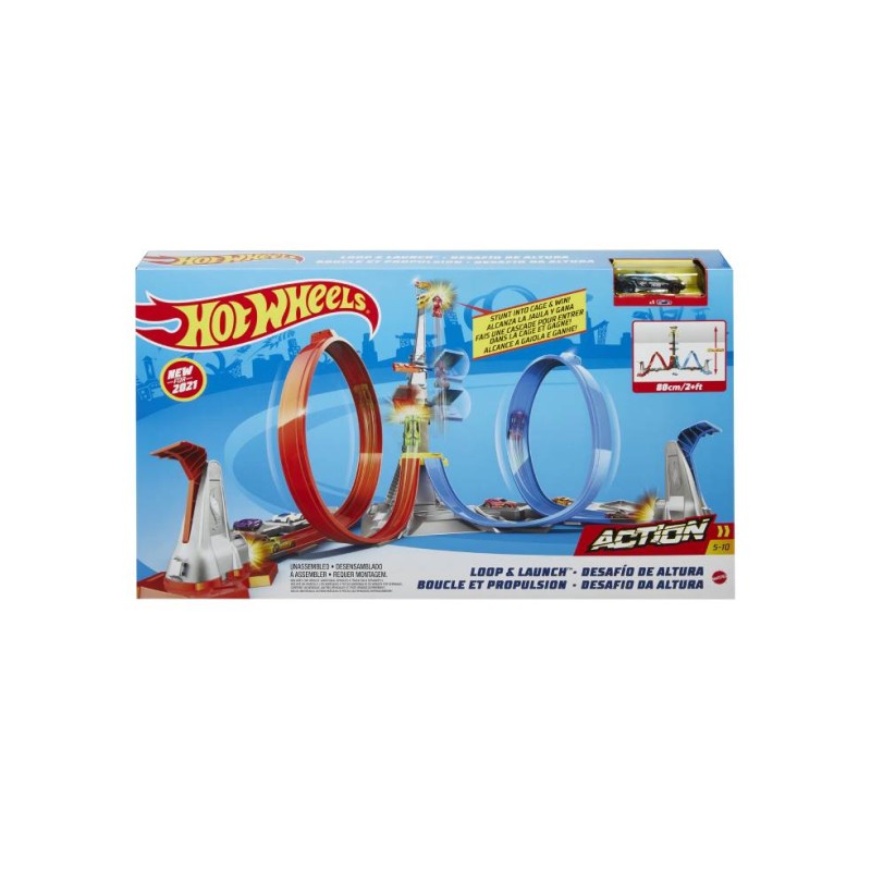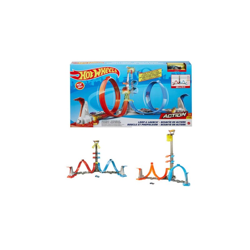 A Hot Wheels Track Double Launch & Loop készlet végtelen akciót kínál! 1 vagy 2 játékosnak tökéletes!