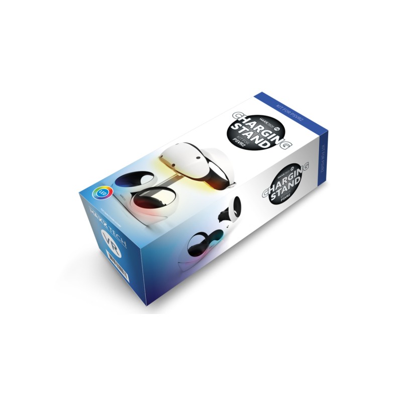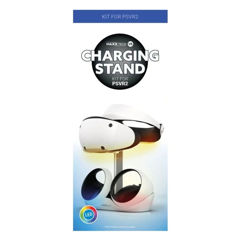 Maxx Tech LED töltőállvány - Kifejezetten PSVR2-hez tervezve. Mindkét PSVR 2 vezérlőt egyszerre tölti, különálló mágneses töltőadapterekkel a leejtési és töltési funkciókhoz.