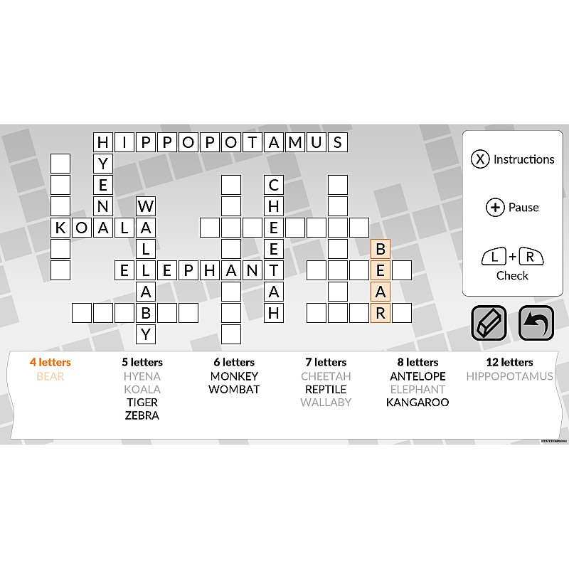 - A játék során a Visszavonás és Újra gombok bármikor használhatók, valamint a radír a hibás betűk törlésére.