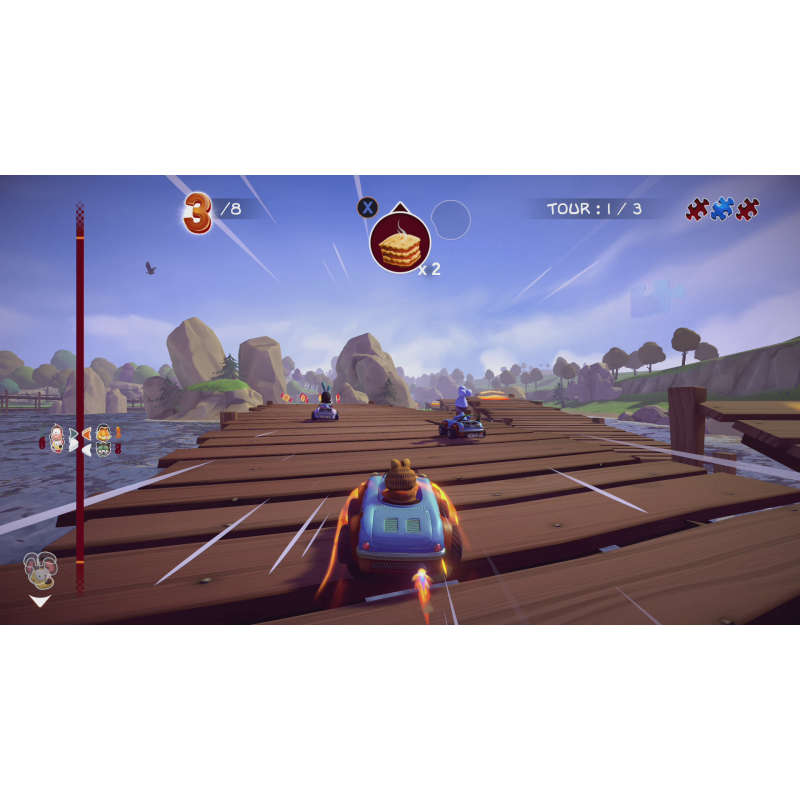 - 16 pálya, őrült versenyek Garfield világa által ihletett csodálatos környezetben, mint például a Palerock Lake és a Pastacosi Factory.