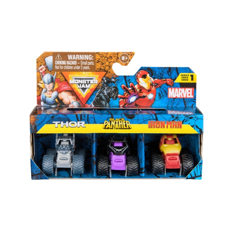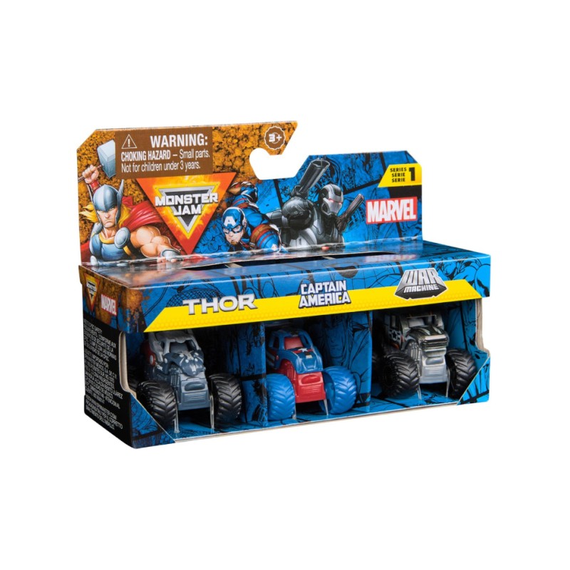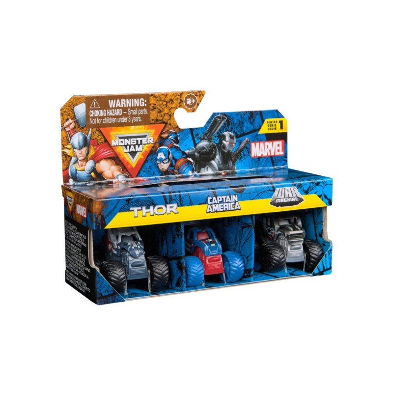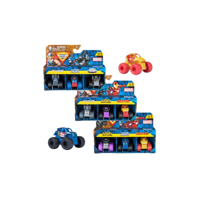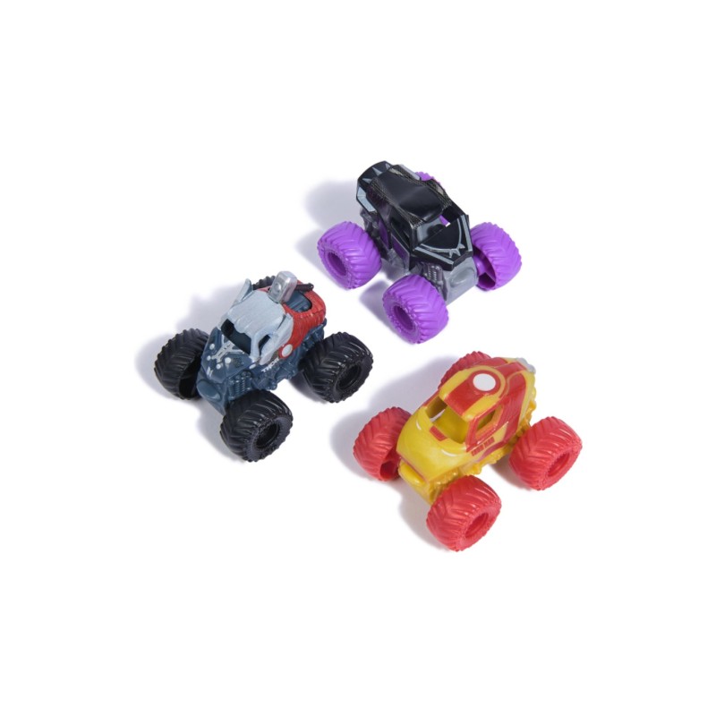 Vegyen részt a vonzó Battle Monster Jam -ban a 3 Mini Monster Monster Jam Marvel Monster Monster Trucks -szel az 1:87 skálán.