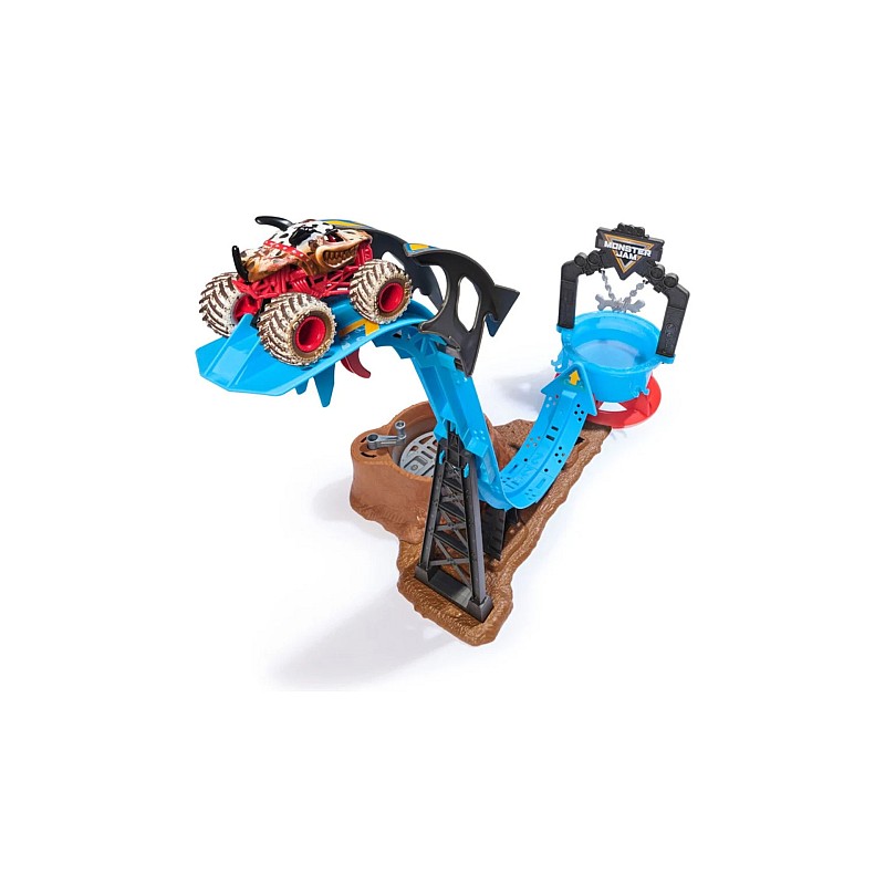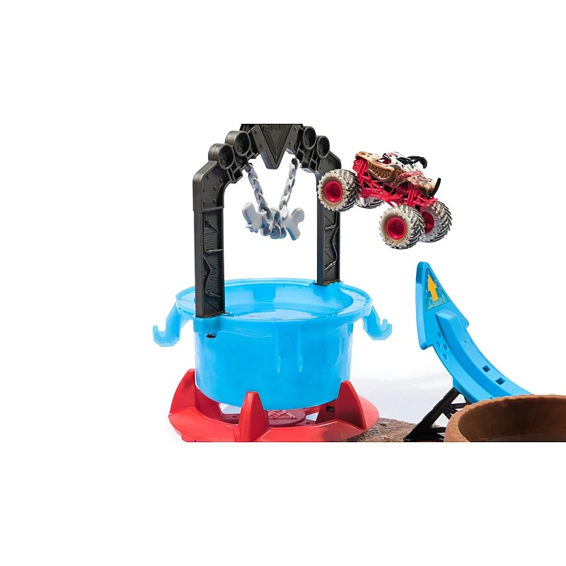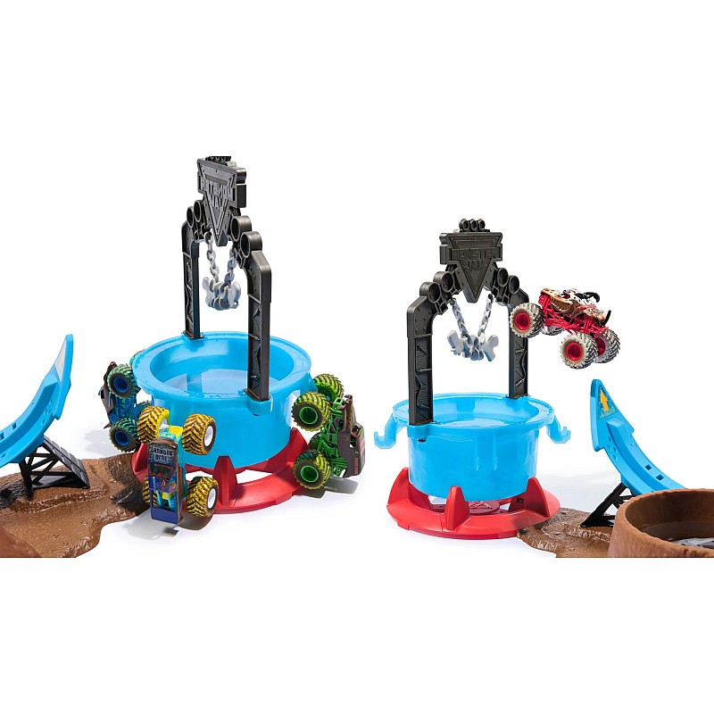 Készüljön fel egy akcióélményre a Monster Jam 1:64 Mud Blasters Dunk Tank Playset -rel (6072014).