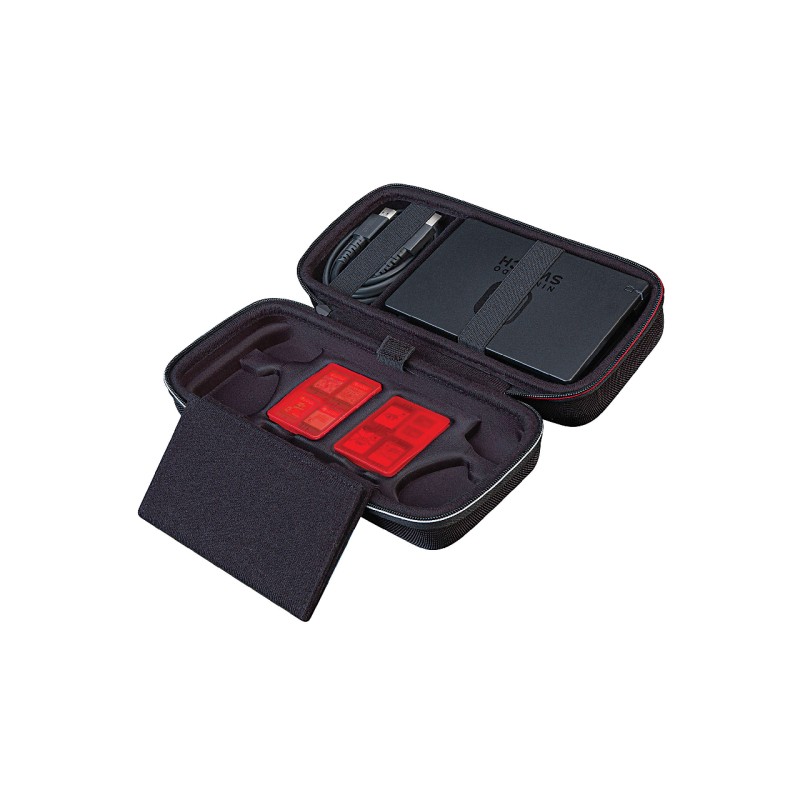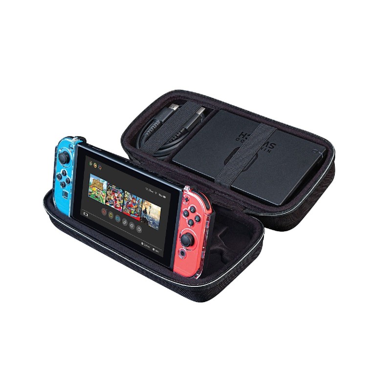Van benne külön hely a Pro Controller, a Joy-Con Grip vagy a dokkoló számára, valamint egy külön rekesz az adapter és a HDMI-kábel tárolására.