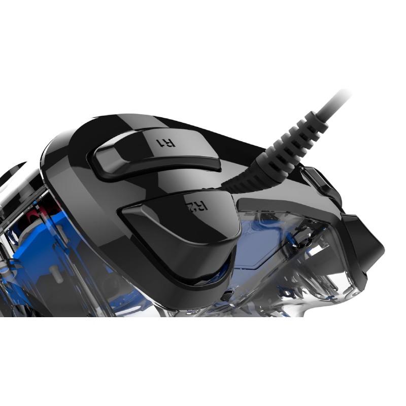 A Wired Illuminated Compact Controller ugyanazokkal a tulajdonságokkal rendelkezik, mint a Wired Compact Controller, de egyedi, átlátszó kialakítású, és LED-es fényeffektusokat is tartalmaz.