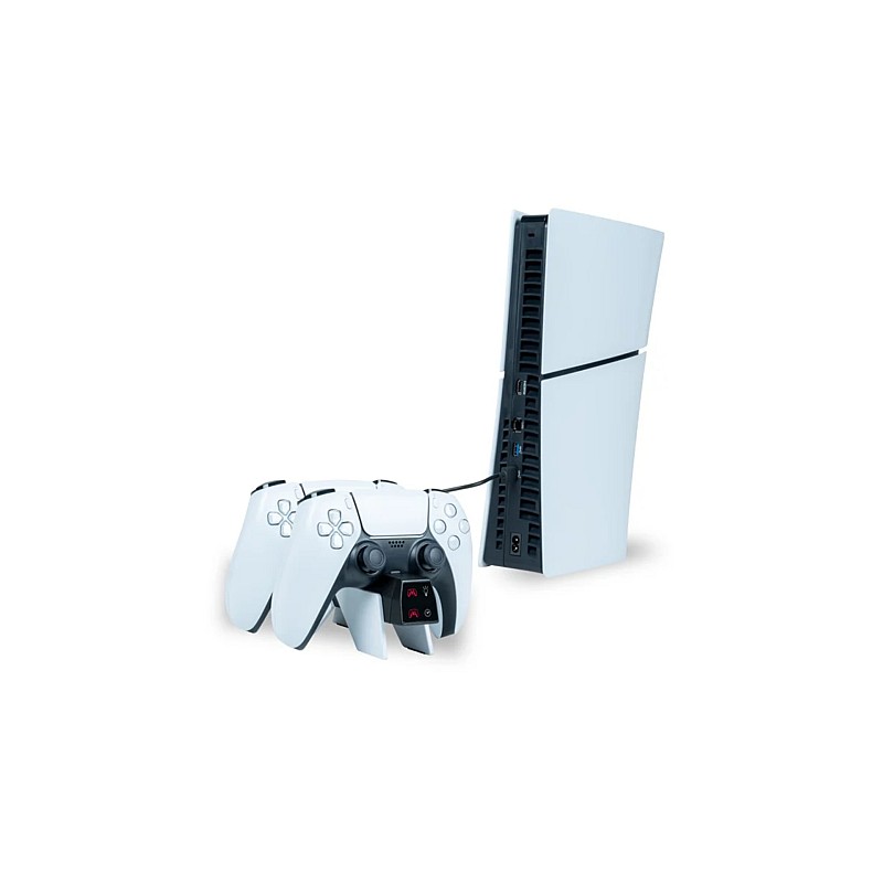 Egyszerre két PS5 DualSense vezérlőt is képes tölteni, így kényelmes megoldást kínál a vezérlők feltöltött és használatra készen tartására.