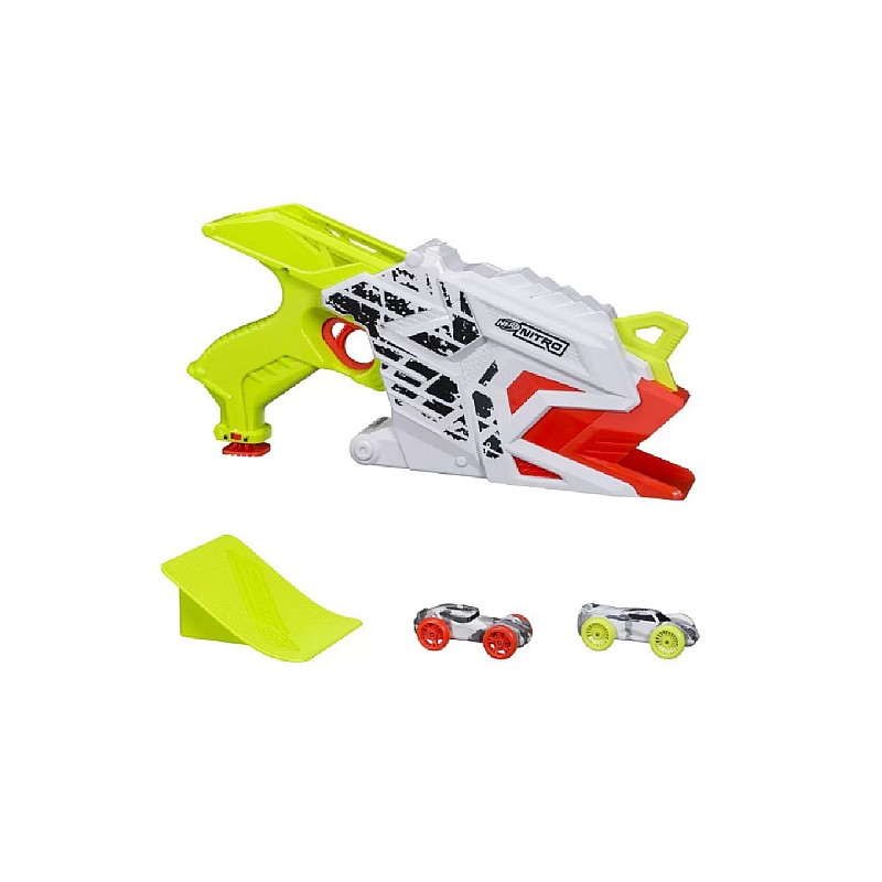 A készlet tartalmaz egy blastert, 2 habszivacs autót és egy rámpát a távolugráshoz.