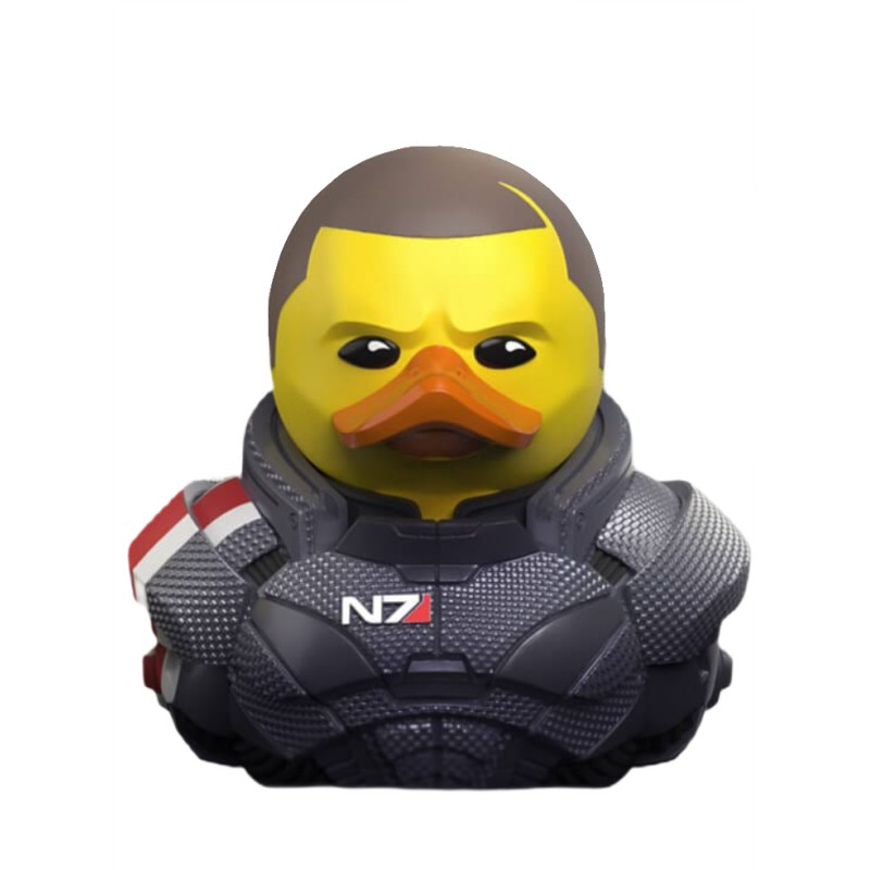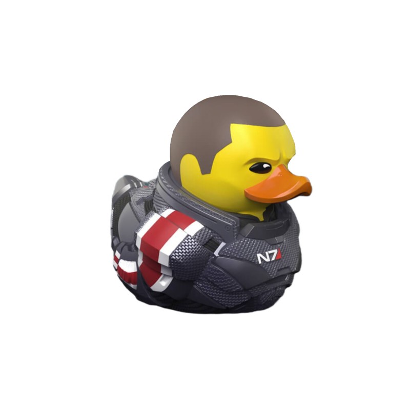 A figura Shepard parancsnokot, a "Mass Effect" sorozat főszereplőjét ábrázolja stilizált és aranyos kacsaszerű formában.