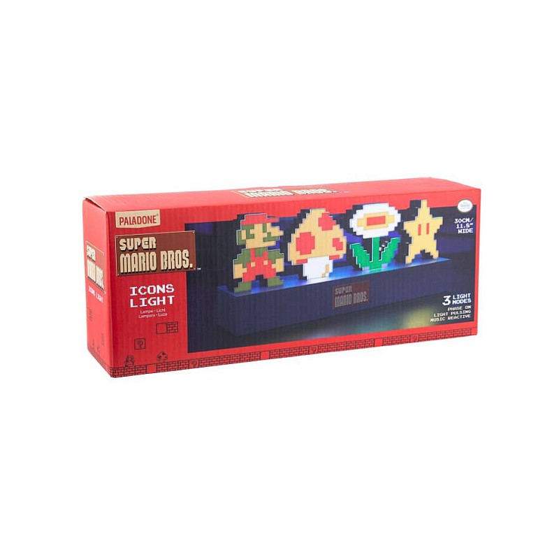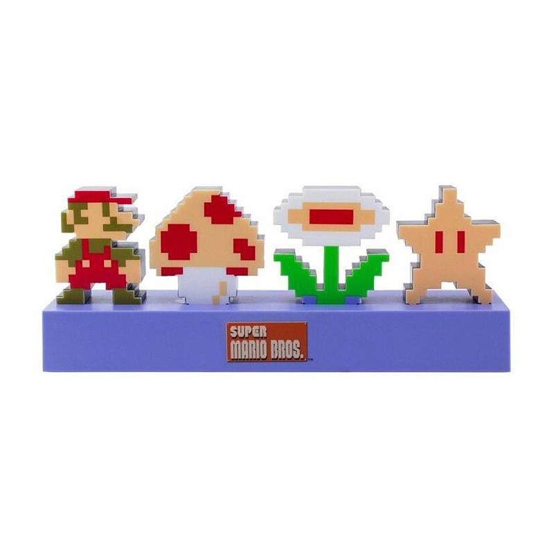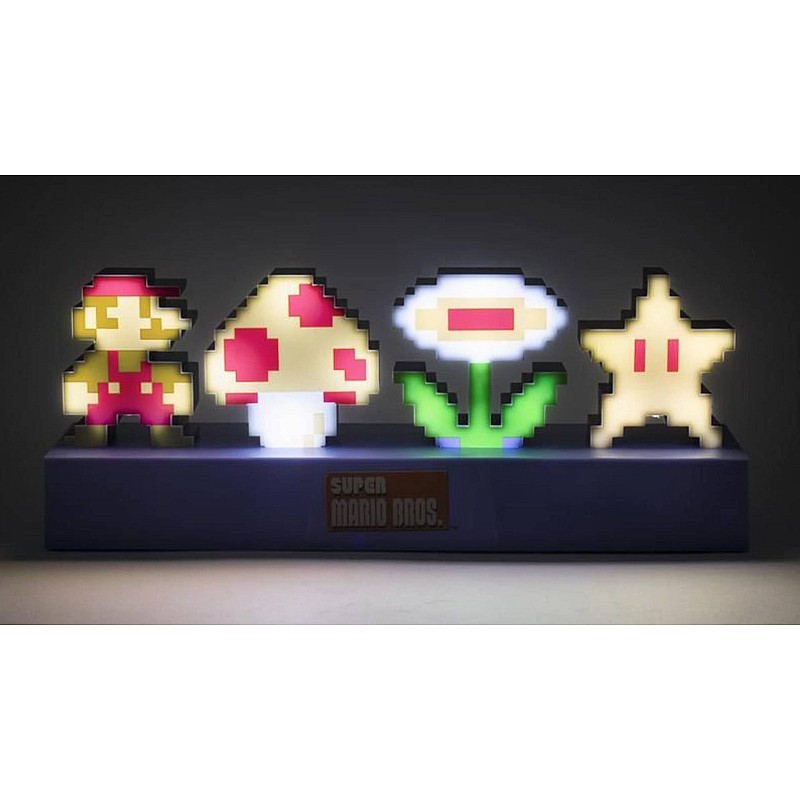 Kapcsold fel a villanyt, és nézd, ahogy Mario, egy szupergomba, egy tűzvirág és egy szupercsillag világít.