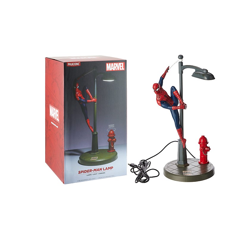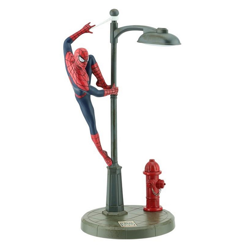 Spidey egy állólámpán ülve, és készen áll a cselekvésre, ez a fantasztikus asztali lámpa ellenállhatatlan a rajongók körében élő gyerekek és felnőttek számára.