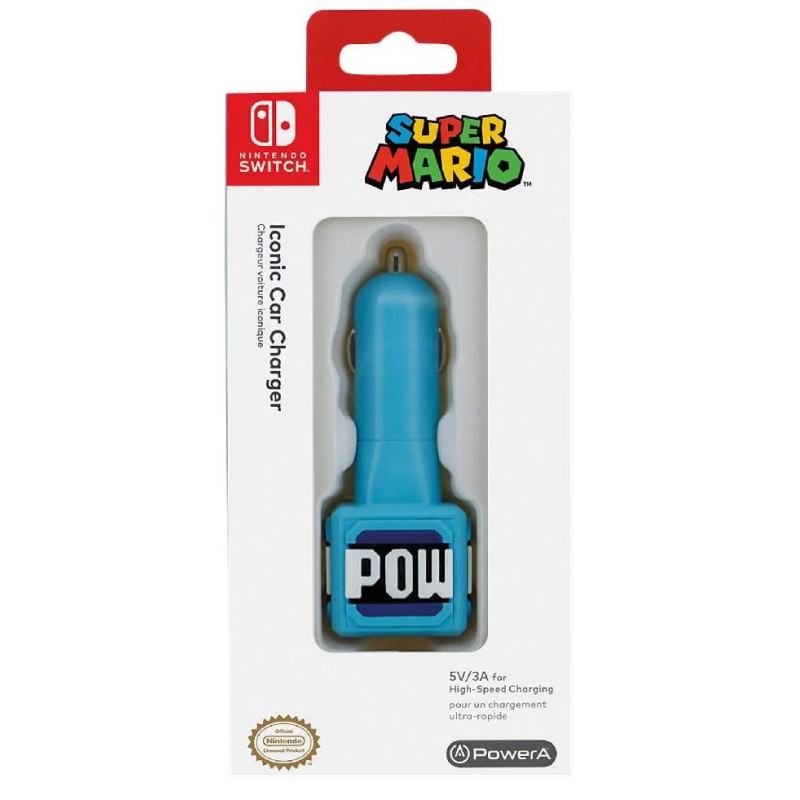 A nosztalgikus POW Blocknak álcázott, hivatalosan engedélyezett Nintendo Switch autós töltő 1,6 m-es fonott kábellel rendelkezik.