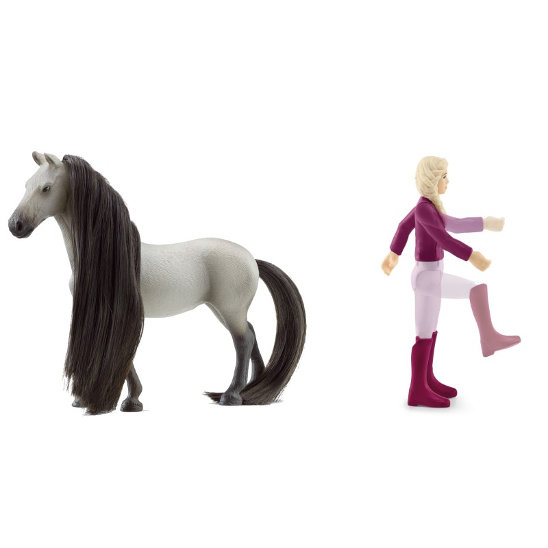 Teljesen rugalmas figuránk, Sofia és trakehner lova, Dusty a Sofia & Dusty Starter Setből a Schleich Horse Club Sofia's Beauties Sofia igazi barátok egy életre.