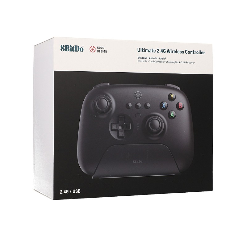 - Include: Controler 8BitDo Ultimate 2.4g wireless , Cablu USB, Manual de instrucțiuni, Dock de încărcare, Adaptor 2.4g