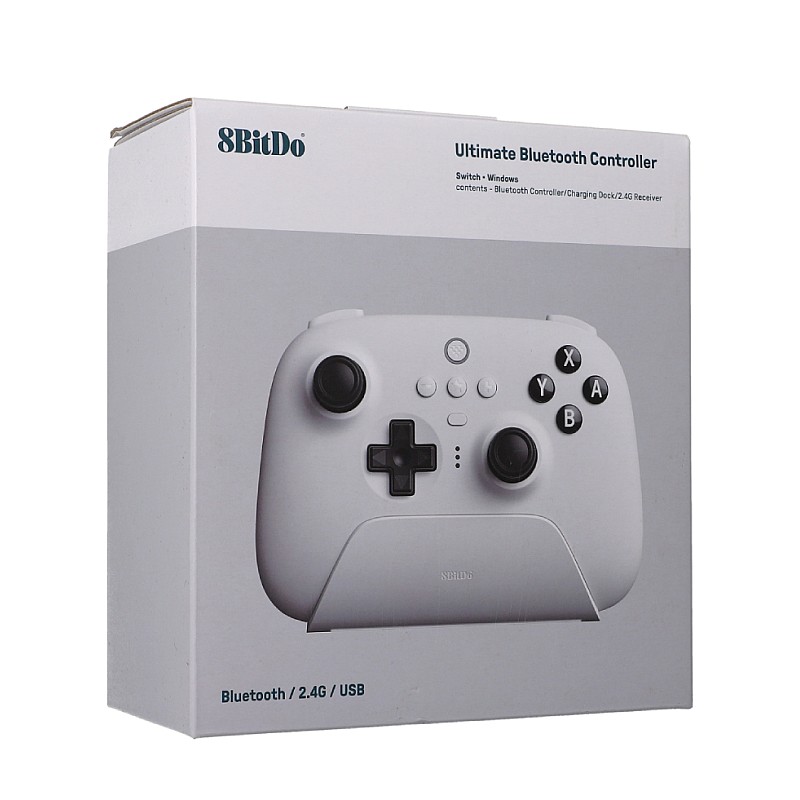 - Include: Controler 8BitDo Ultimate Bluetooth , Cablu USB, Statie de încărcare, Adaptor 2.4g, Manual de instrucțiuni