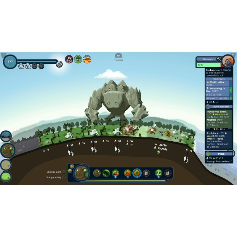 REUS este un joc în care controlezi patru giganți. Fiecare gigant are propriile puteri unice care vă permit să modelați și să evoluați planeta.