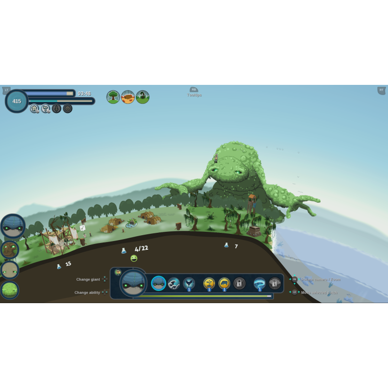 - Controlează patru giganți puternici, fiecare cu abilitățile lor unice.