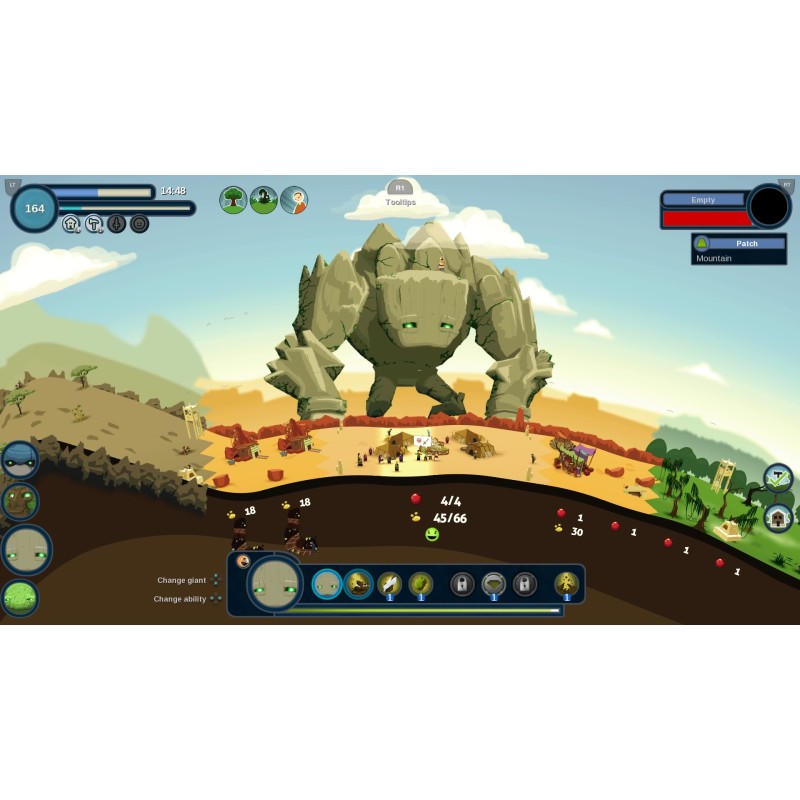 Te joci ca un super-erou uriaș? Ce zici de a juca cu patru giganți cu superputeri? În REUS poți! Fiecare uriaș are propriile sale forțe și, cu toate puterile lor combinate, vei modela și evolua planeta pentru a-i lăsa pe micii tăi oameni să trăiască în prosperitate și pace.