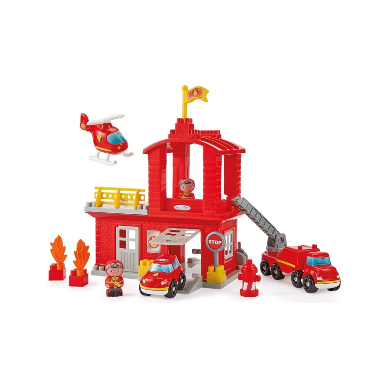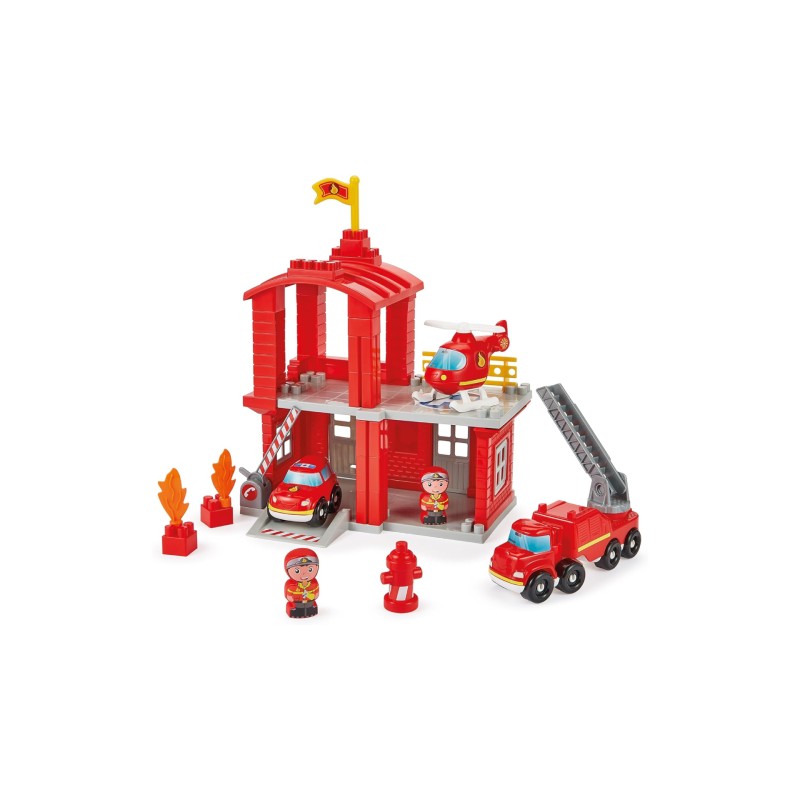 Această cazarmă conține un etaj și un elicopter și este însoțită de 2 pompieri, 1 elicopter, 1 camion la scară mare, 1 mașină de pompieri, 1 brigadă de pompieri, flăcări, pietre etc.