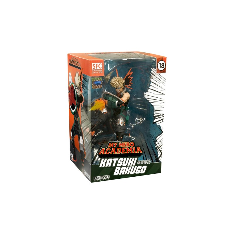 Aceasta face parte din linia Super Figure Collection de la Abystyle. Katsuki vine într-o postură dinamică pe un suport de prezentare cu logo-ul My Hero Academia.