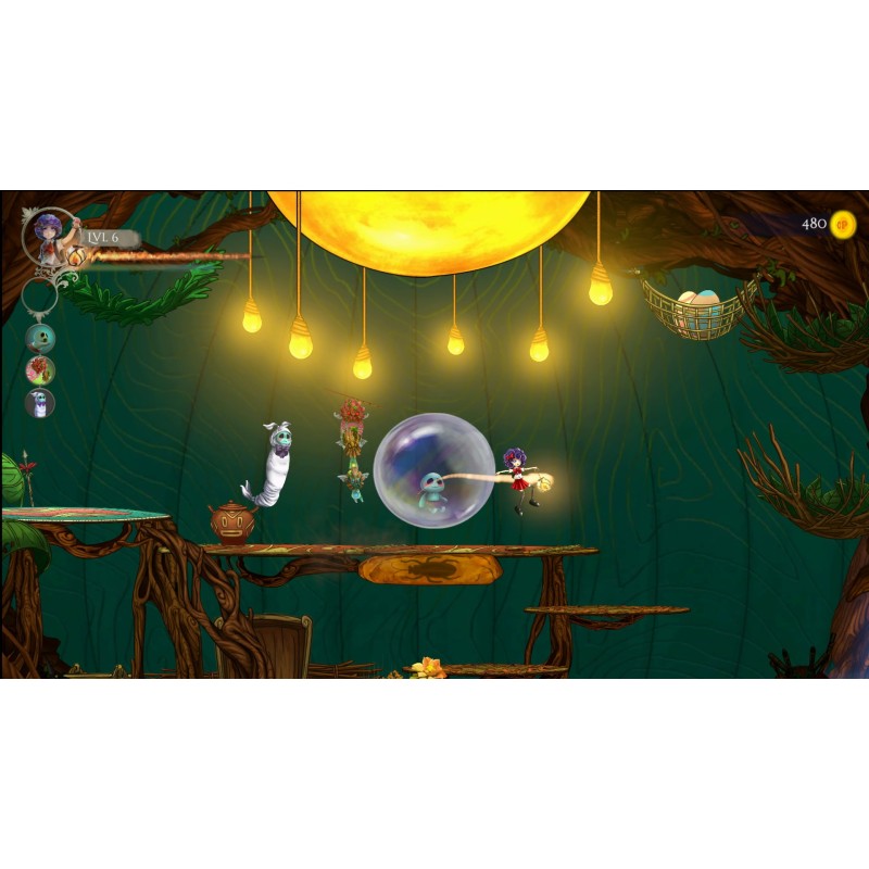 - Explorați medii minunat realizate în această aventură de acțiune cu defilare plină de surprize și design originale de personaje.