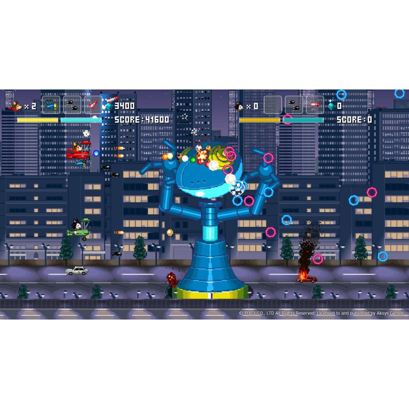 - Un shooter orizontal cu derulare laterală, cu o grafică retro vibrantă și o distribuție adorabilă de personaje animale.